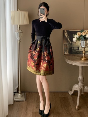 小香风印花系带连衣裙女2025春秋新款巨好看的裙子