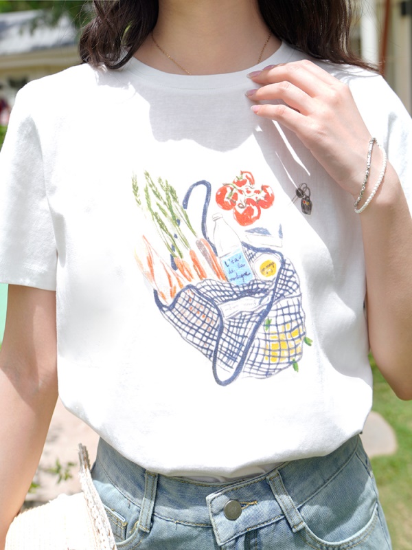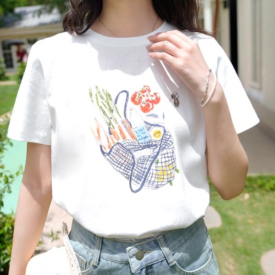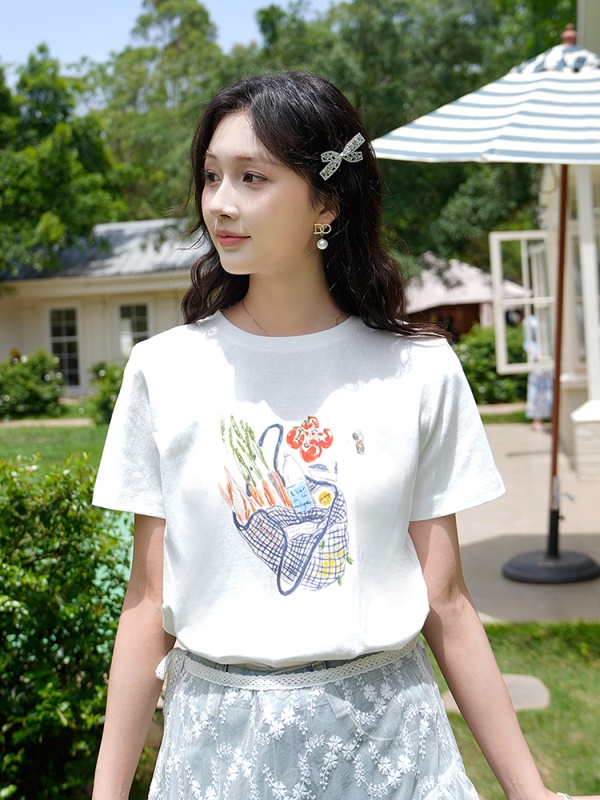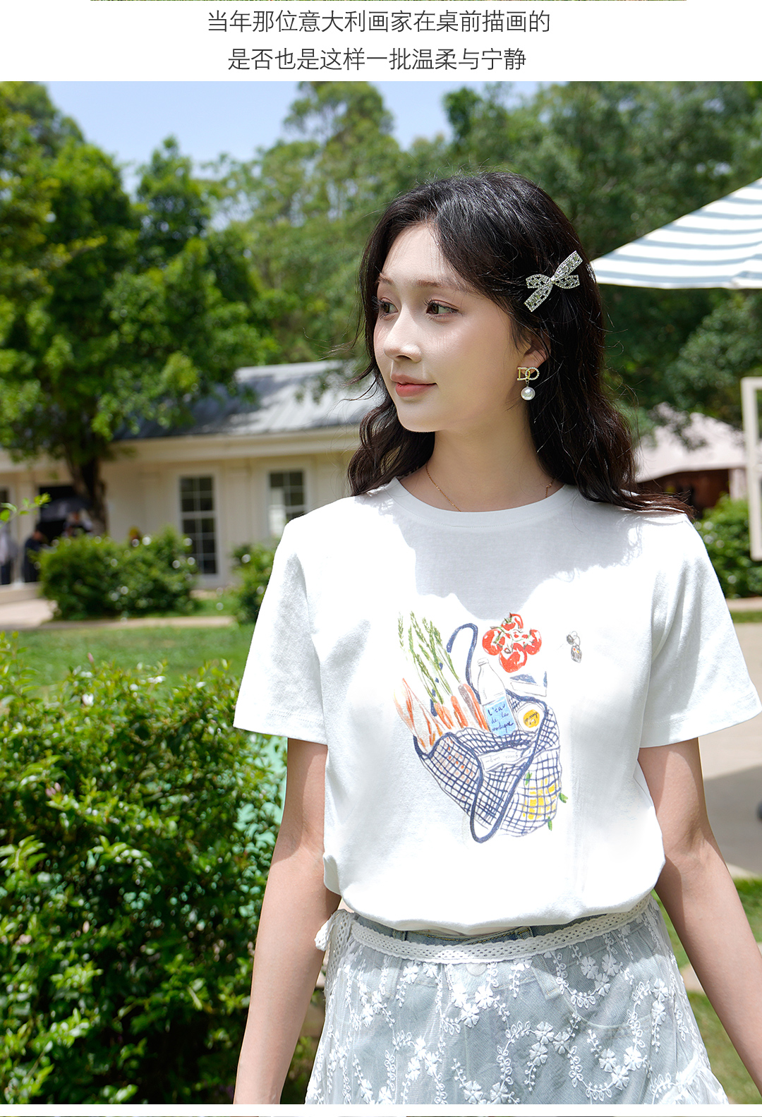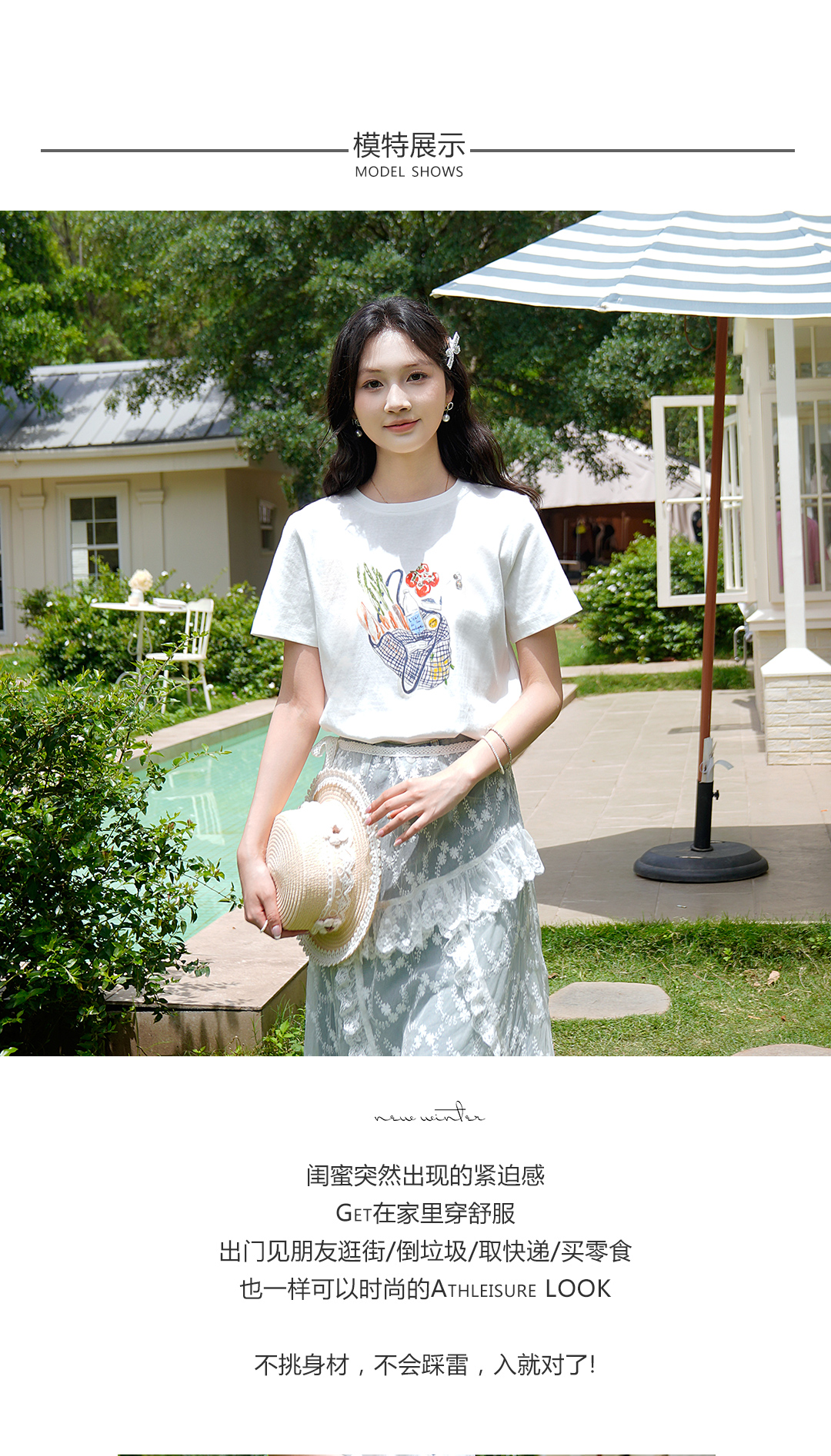 ATAR休闲宽松女装印花短袖T恤2025夏季新品圆领棉质体恤绣花上衣