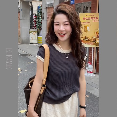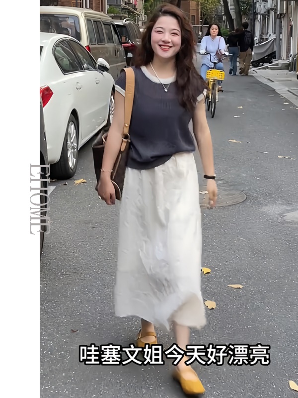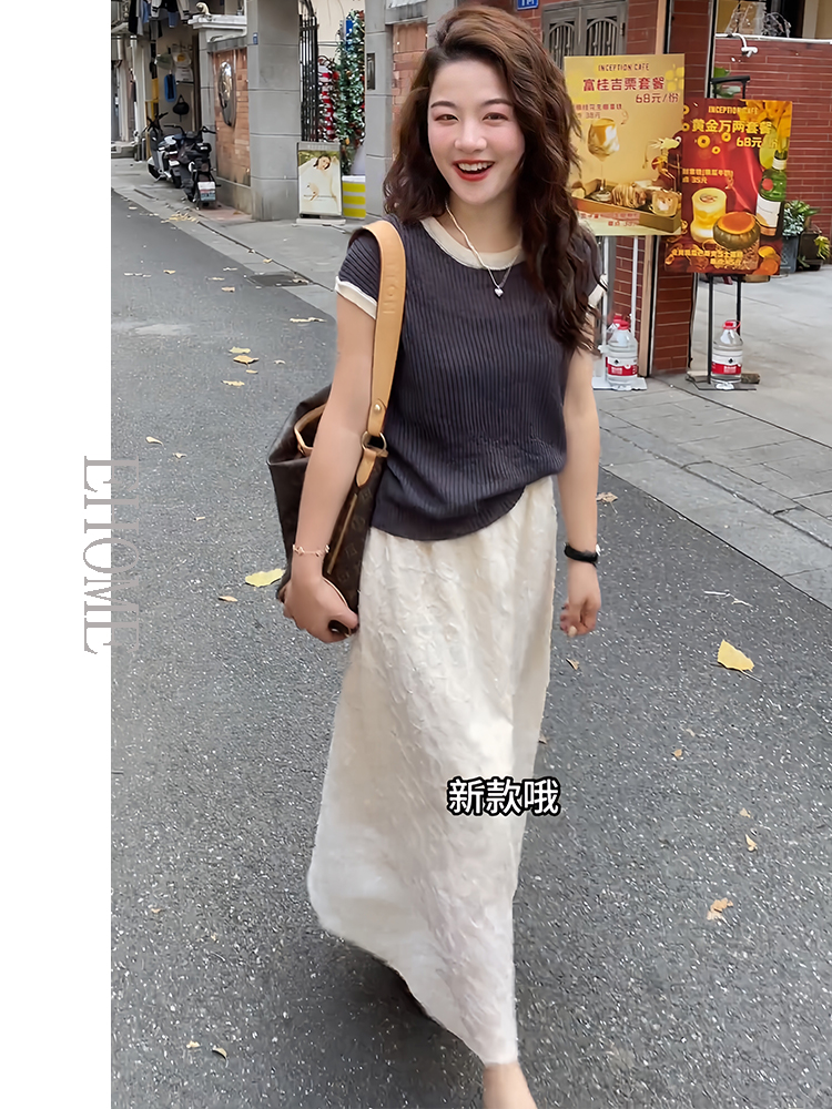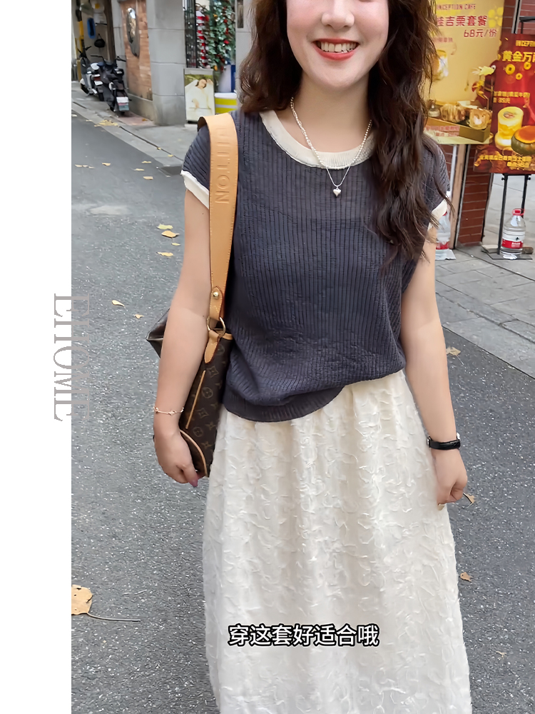 商品名称:夏日绝美穿搭套装薄款针织冰丝短袖T恤立体蕾丝花朵百搭半身裙女