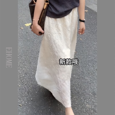 ByYou 春季新款白色高腰针织半身裙女百搭显瘦中长款包臀鱼尾裙子