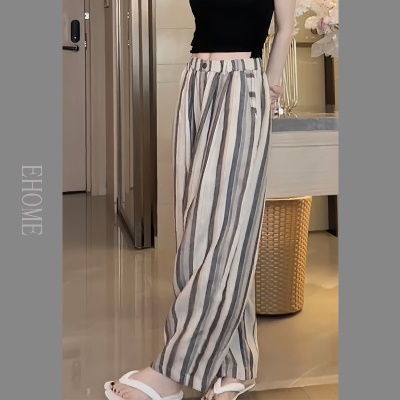 杏色条纹裤子