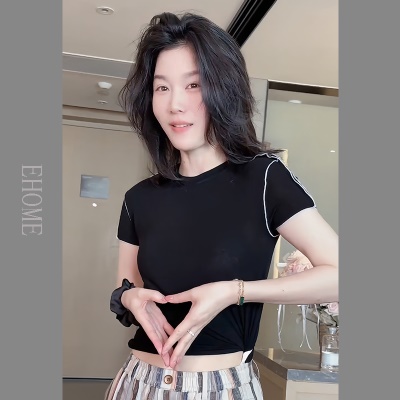 天丝短袖t恤女夏季大版气质潮牌冰丝体恤独特别致新款上衣设计感