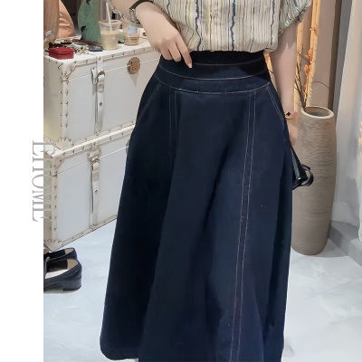 蓝色牛仔半身裙 裙长83左右