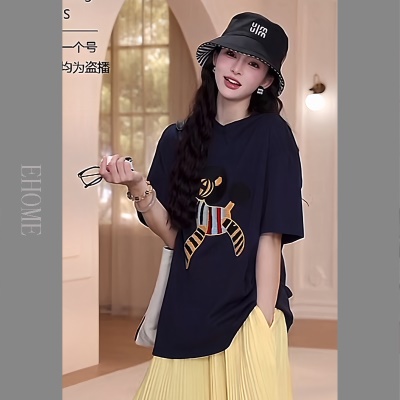 商品名称:夏日多巴胺穿搭套装慵懒风减龄宽松小马短袖T恤松紧腰压褶半身裙