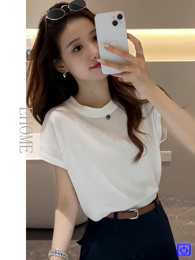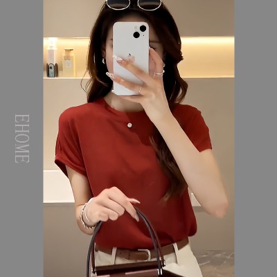 灰色镂空正肩短袖T恤女春夏季辣妹露锁骨设计修身半高领上衣体恤
