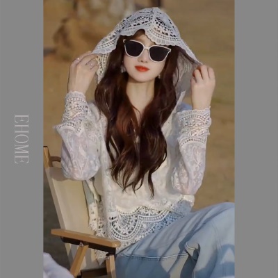 商品名称:独特绝美初春小套装气质减龄百搭蕾丝连帽长袖小衫拼接牛仔短外套
