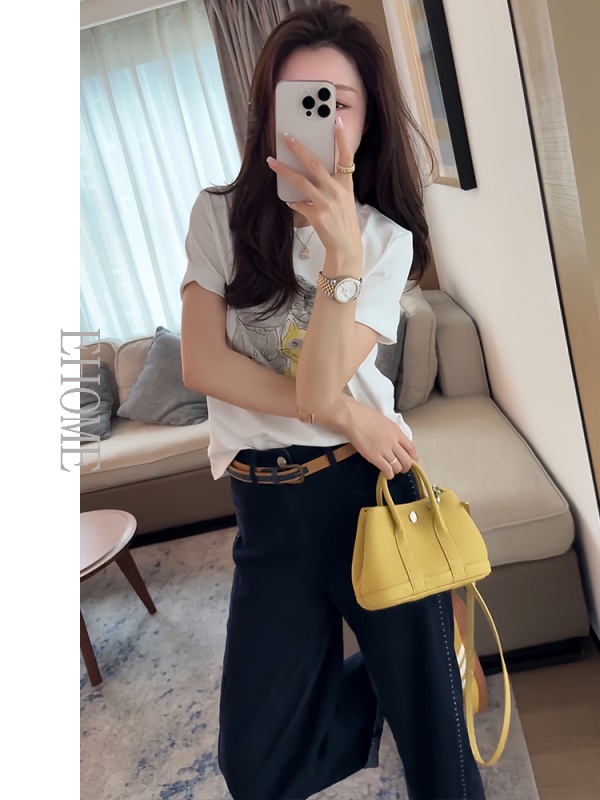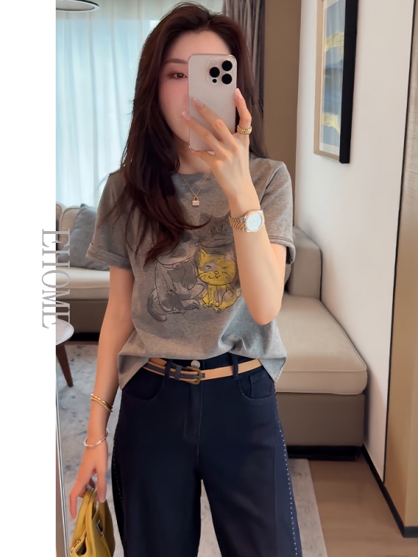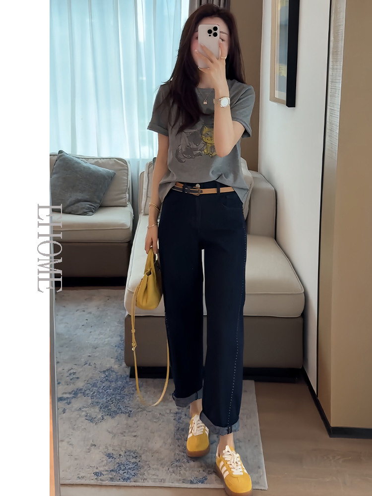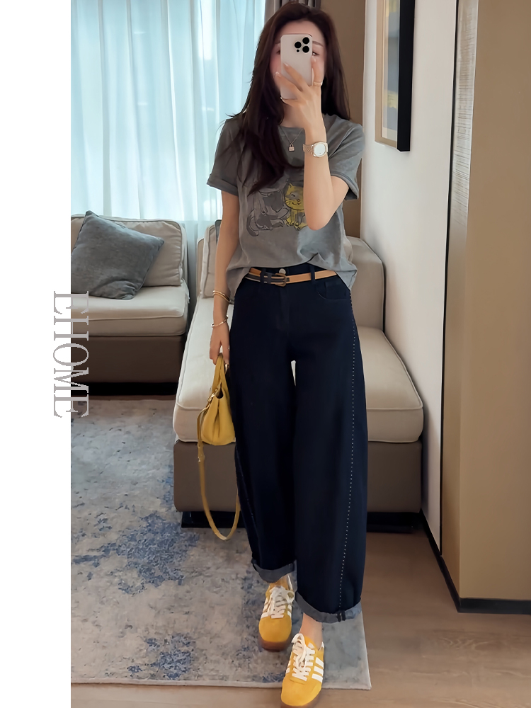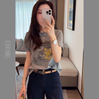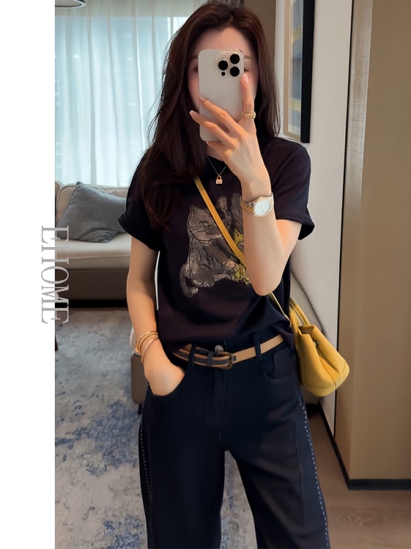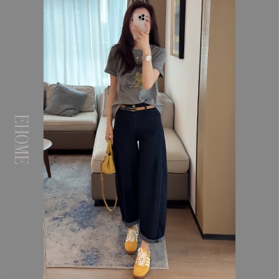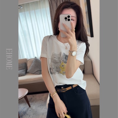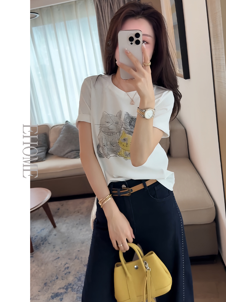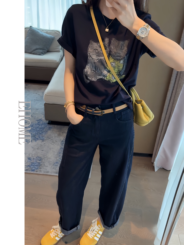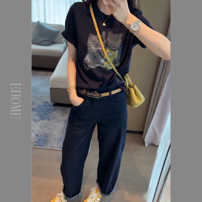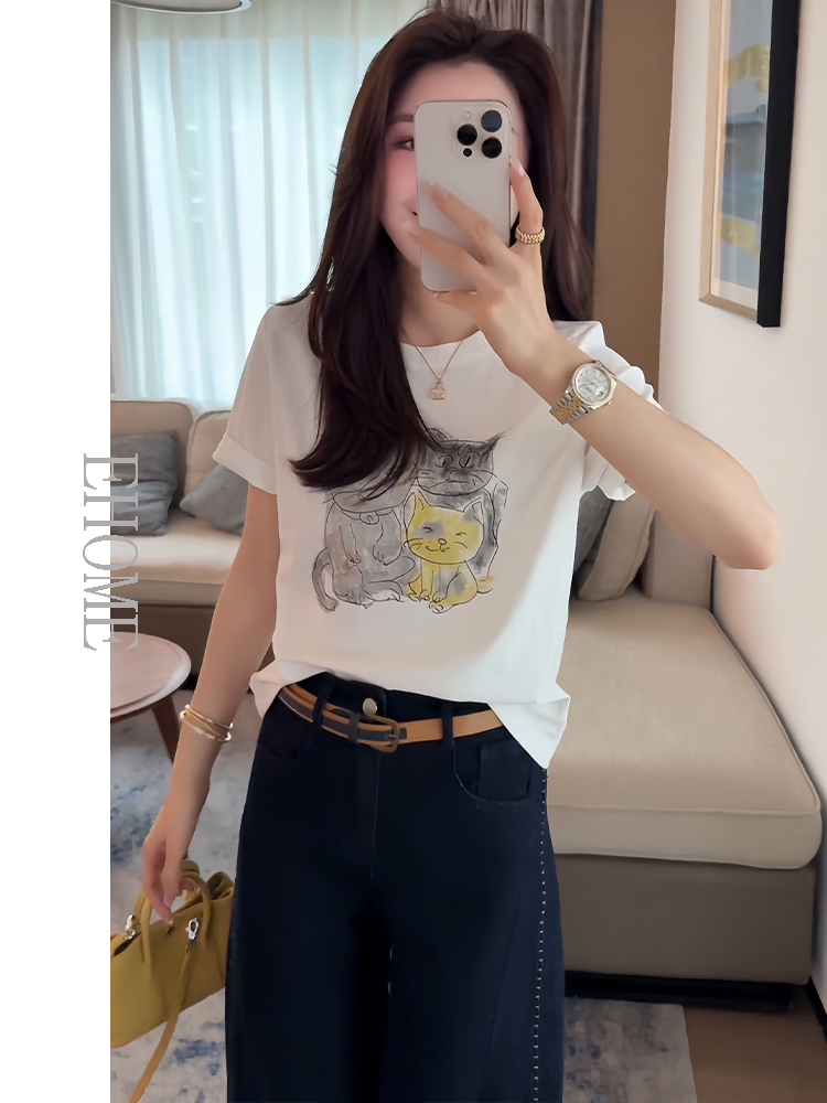 商品名称:2025超火夏装一整套韩系小猫印花短袖T恤百搭显瘦哈伦牛仔裤套装