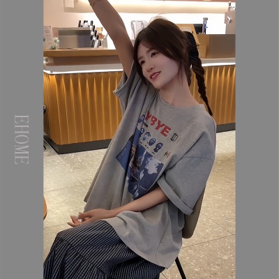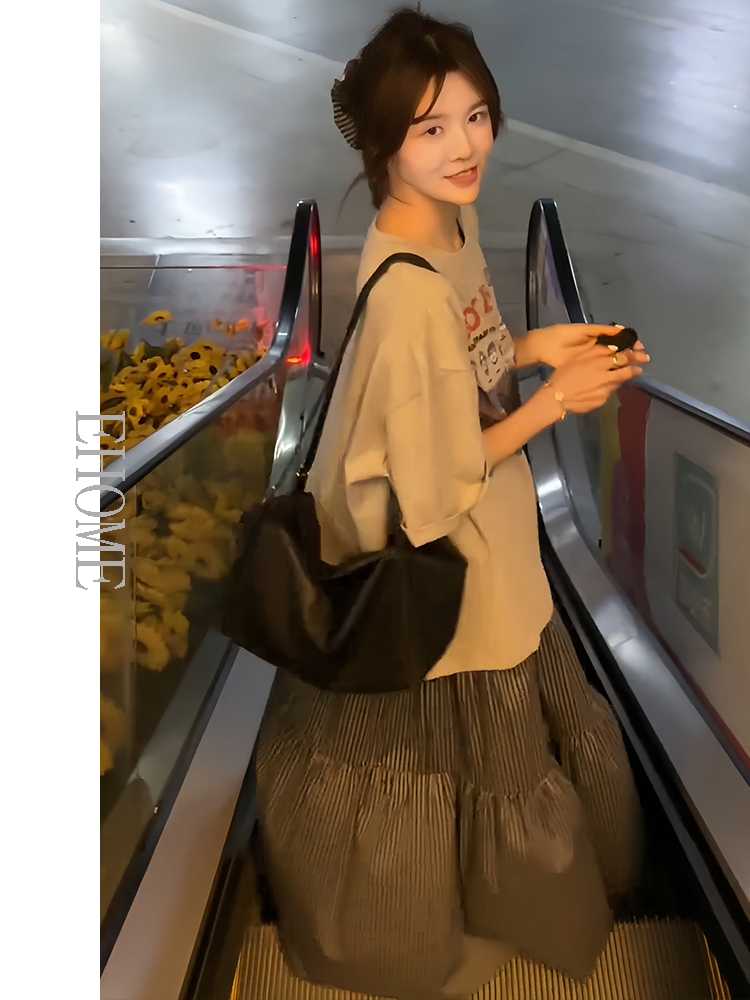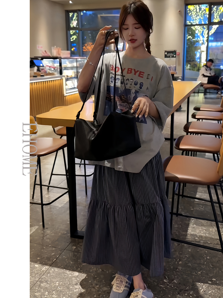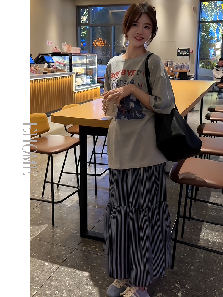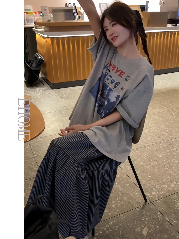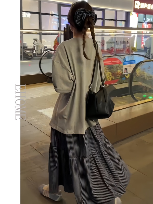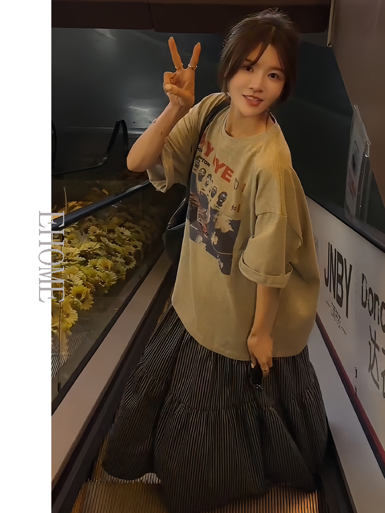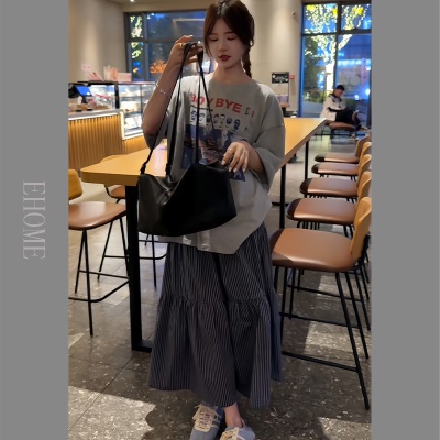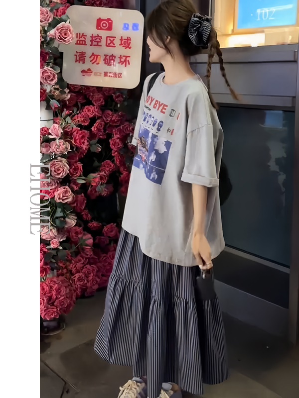 商品名称:初春韩系穿搭一整套美式字母印花休闲宽松短袖T恤格子半身裙套装