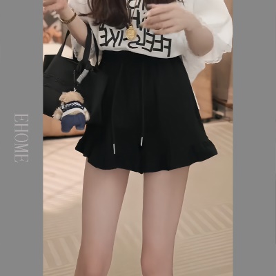 ByYou冬季赫本风加厚丝绒黑色半身裙短款高腰百褶裙遮跨显瘦a字裙