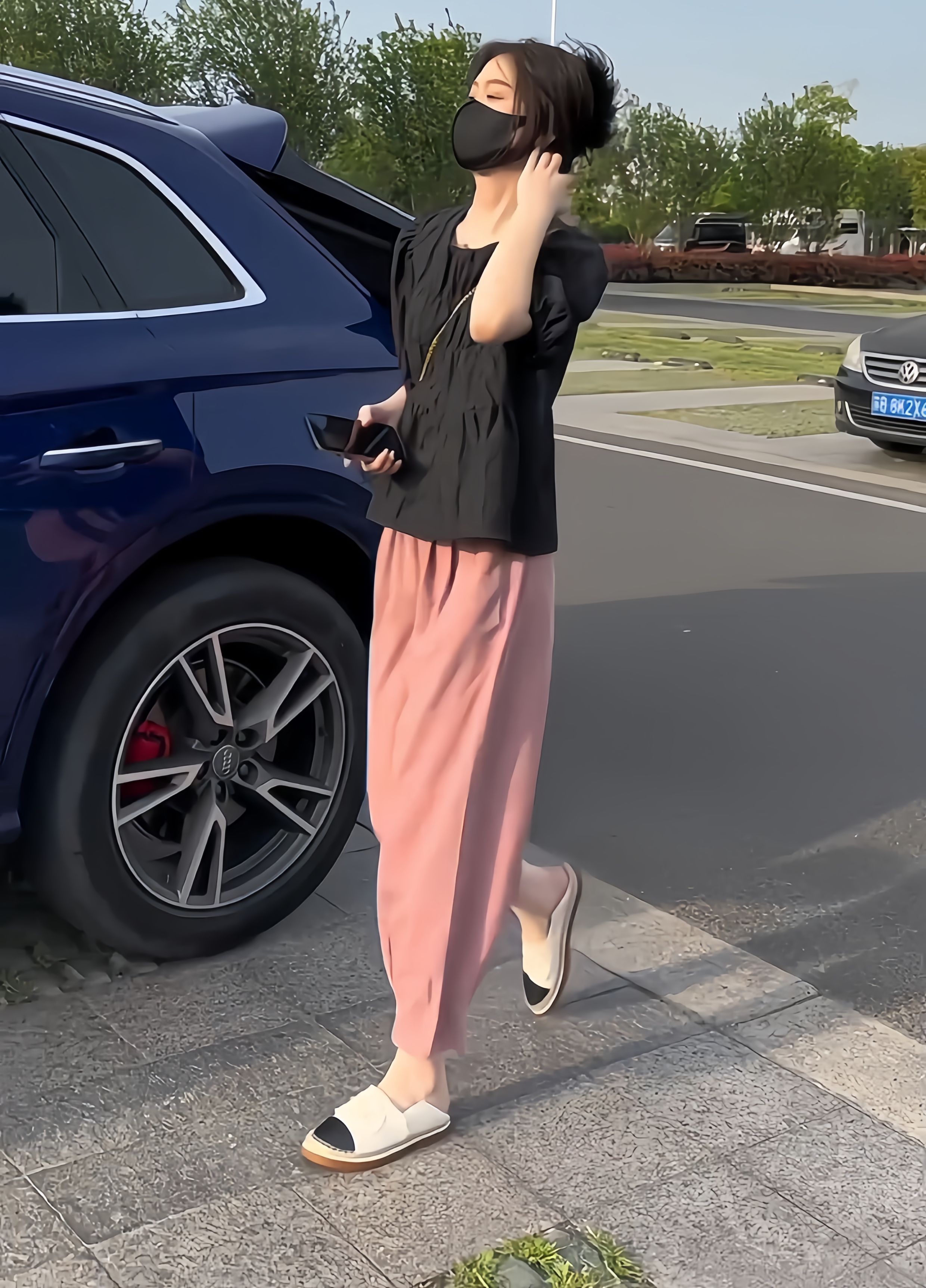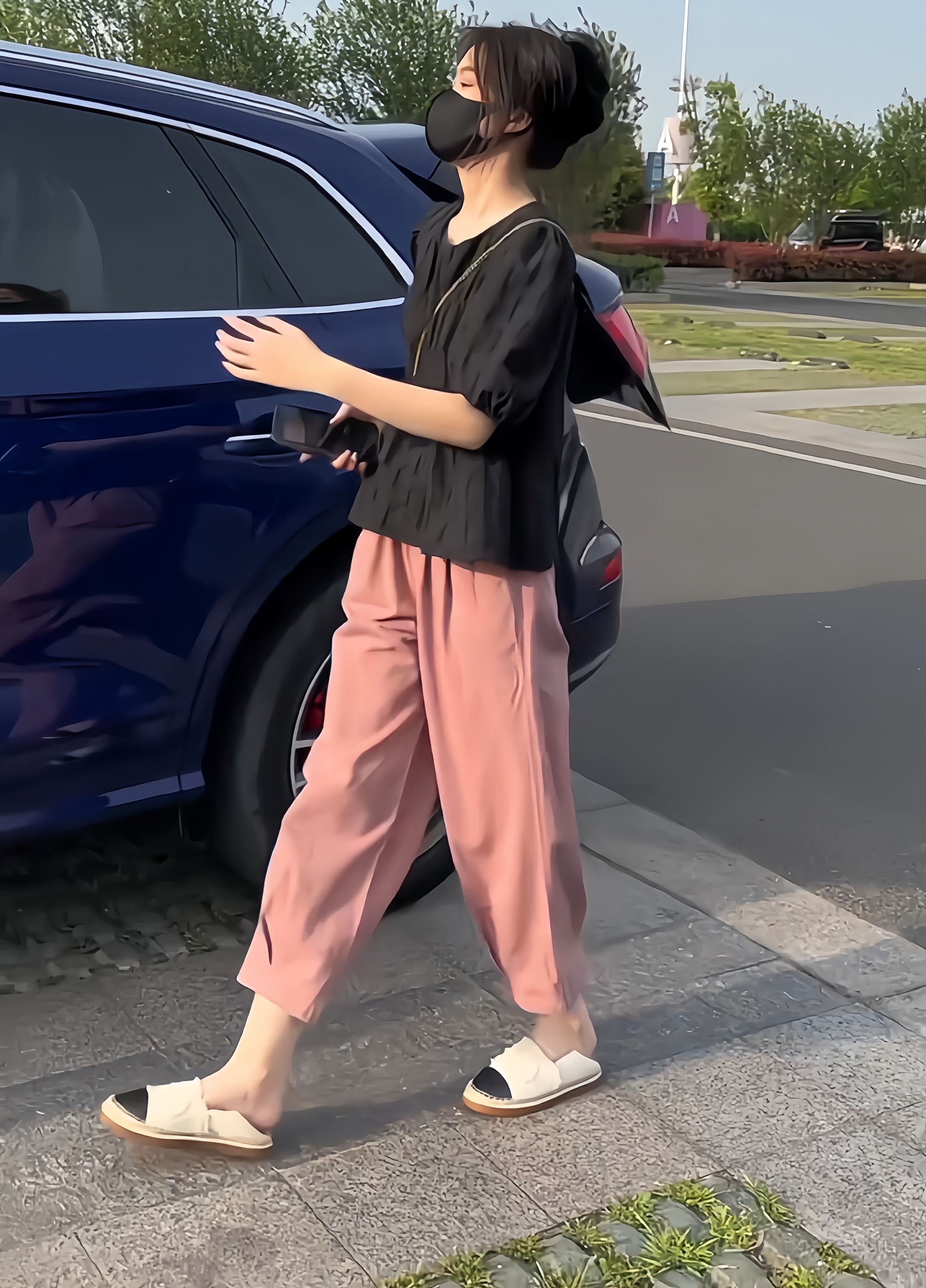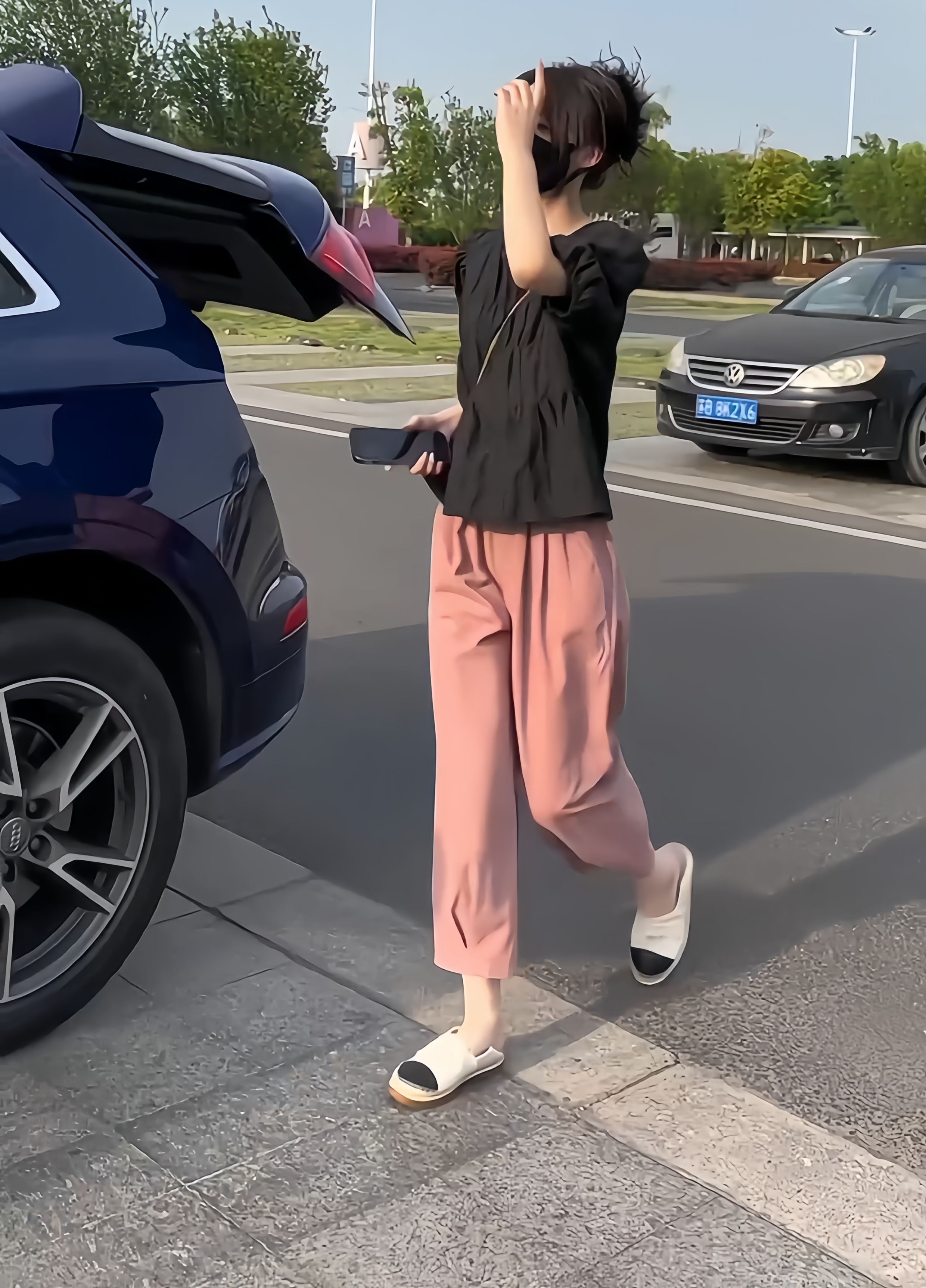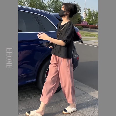 [颜色分类:黑色上衣+粉色萝卜裤 尺码:M码【建议100-110斤 MM】]