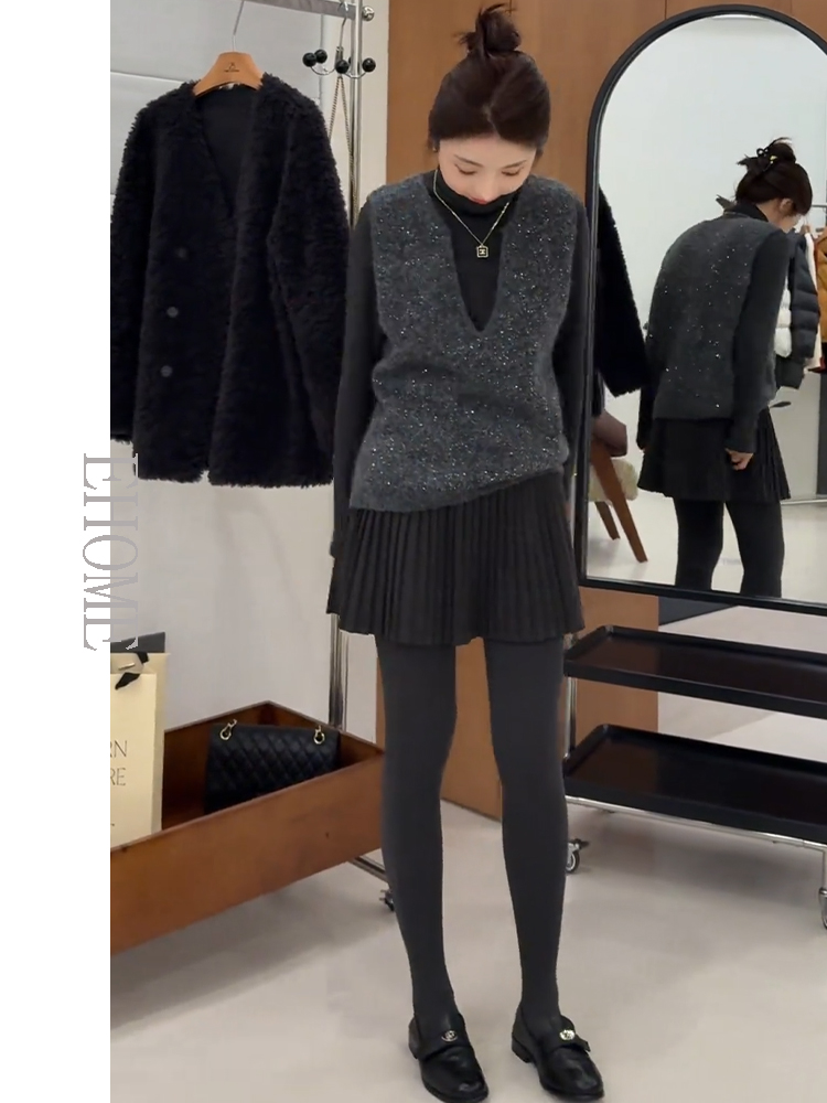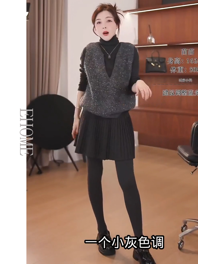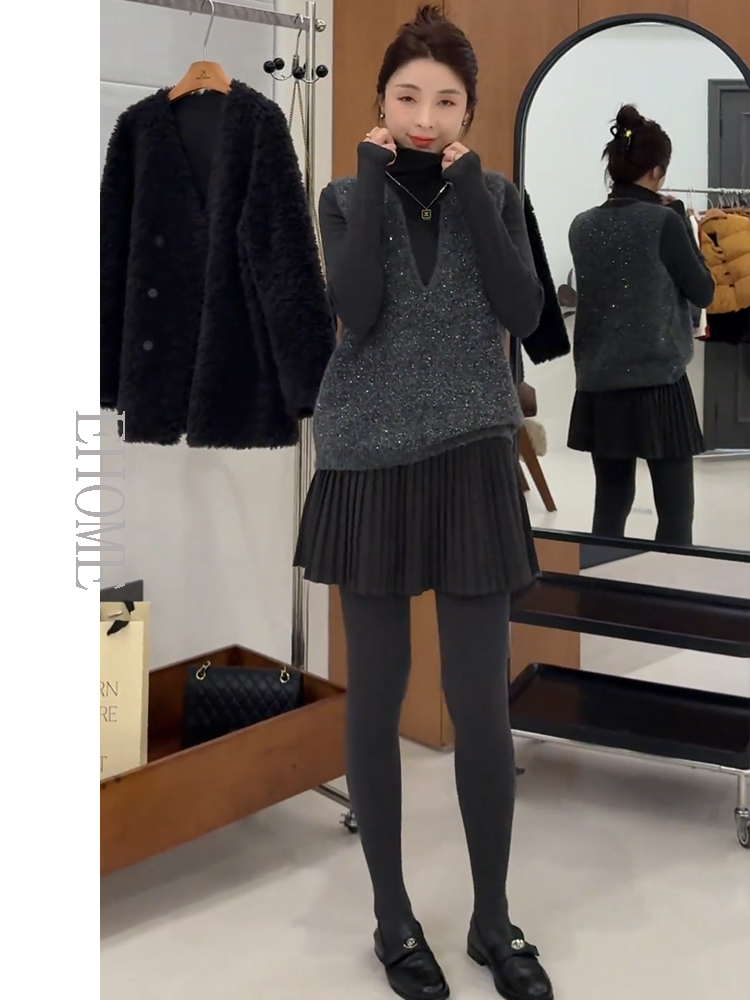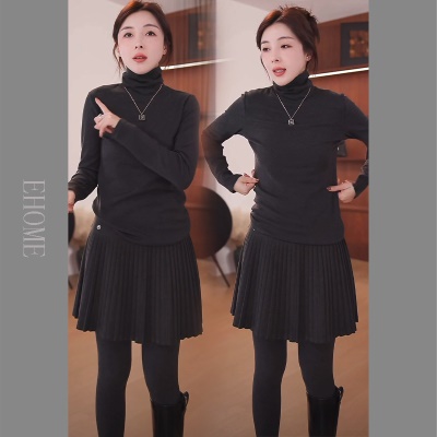 商品名称:冬季穿搭一整套高级感百搭显瘦高领打底衫百褶半身裙气质马甲套装