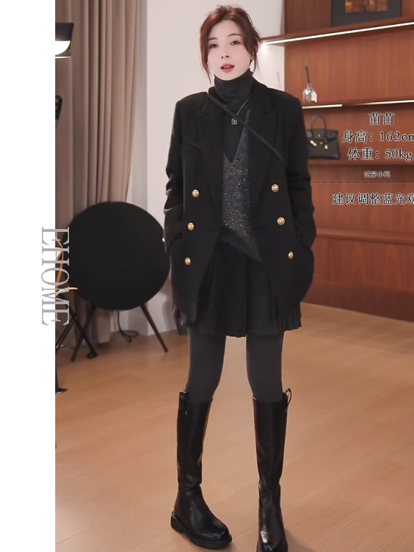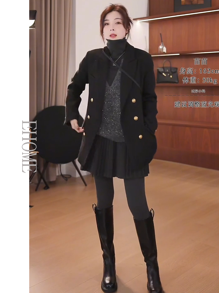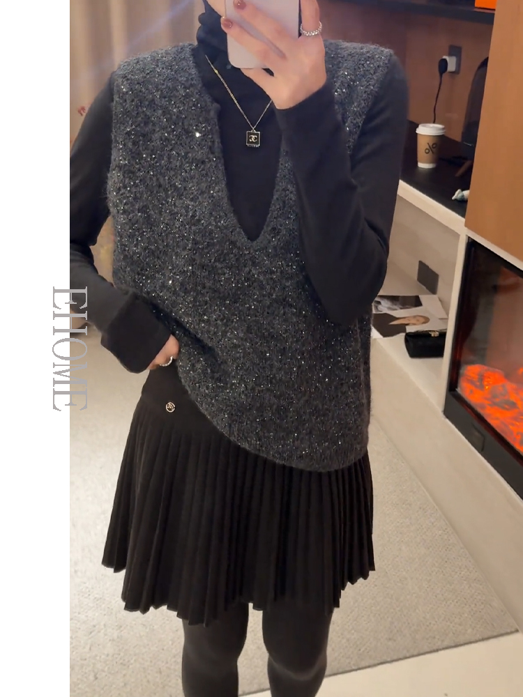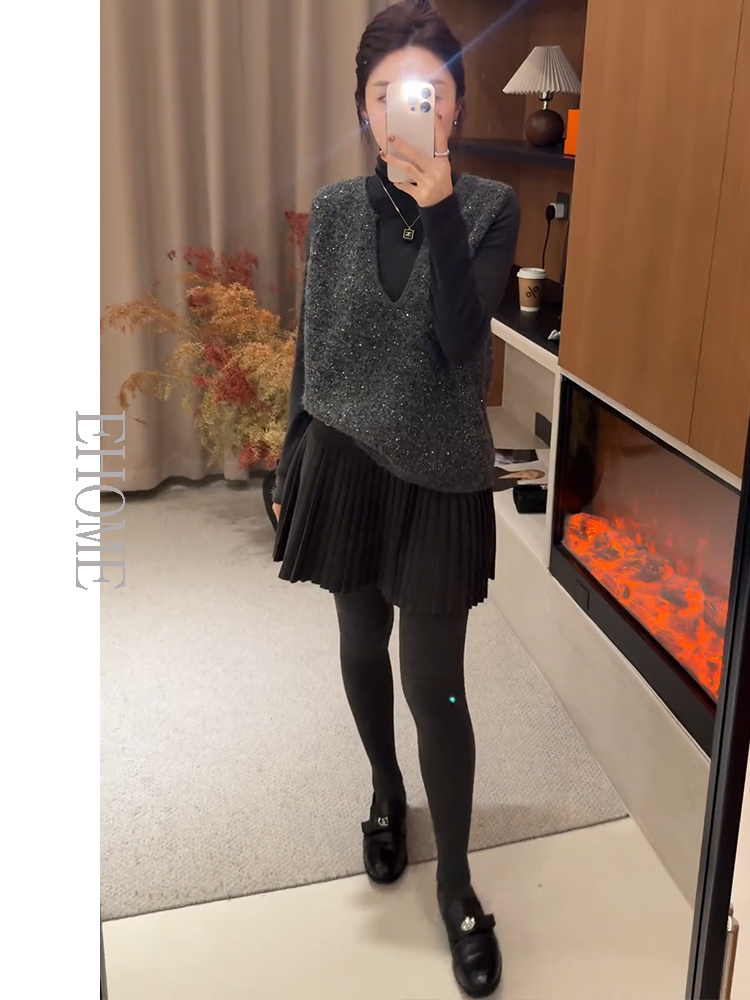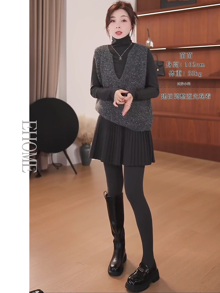 冬季穿搭一整套高级感百搭显瘦高领打底衫百褶半身裙气质马甲套装