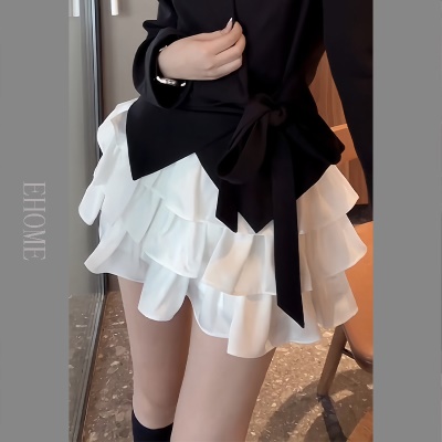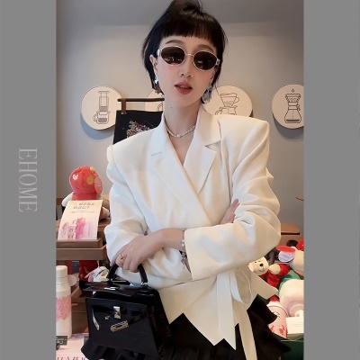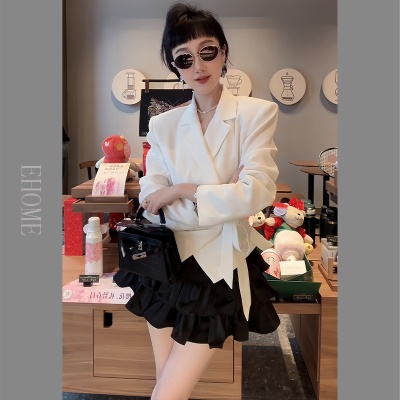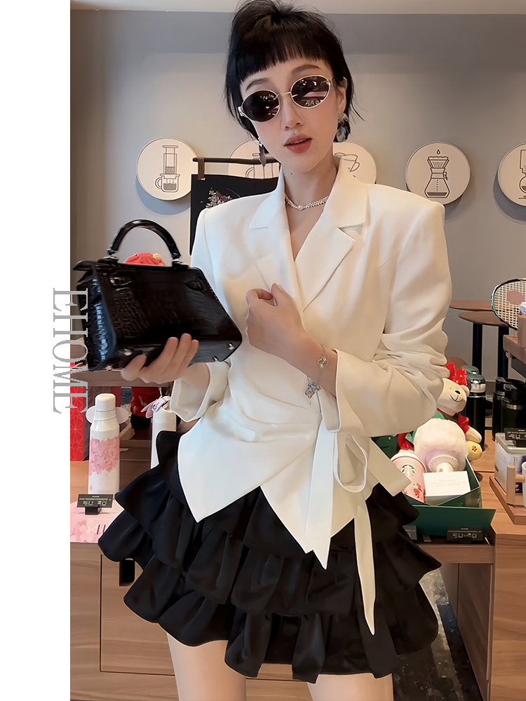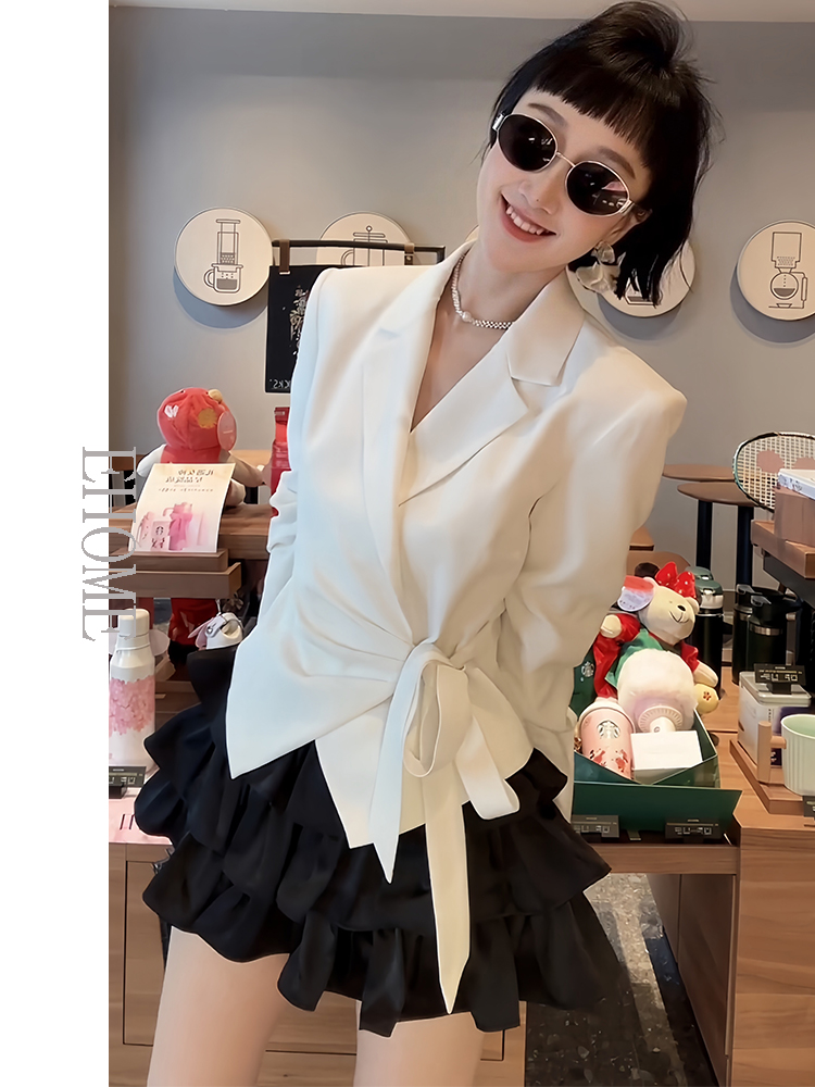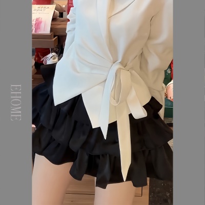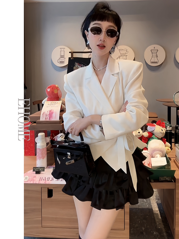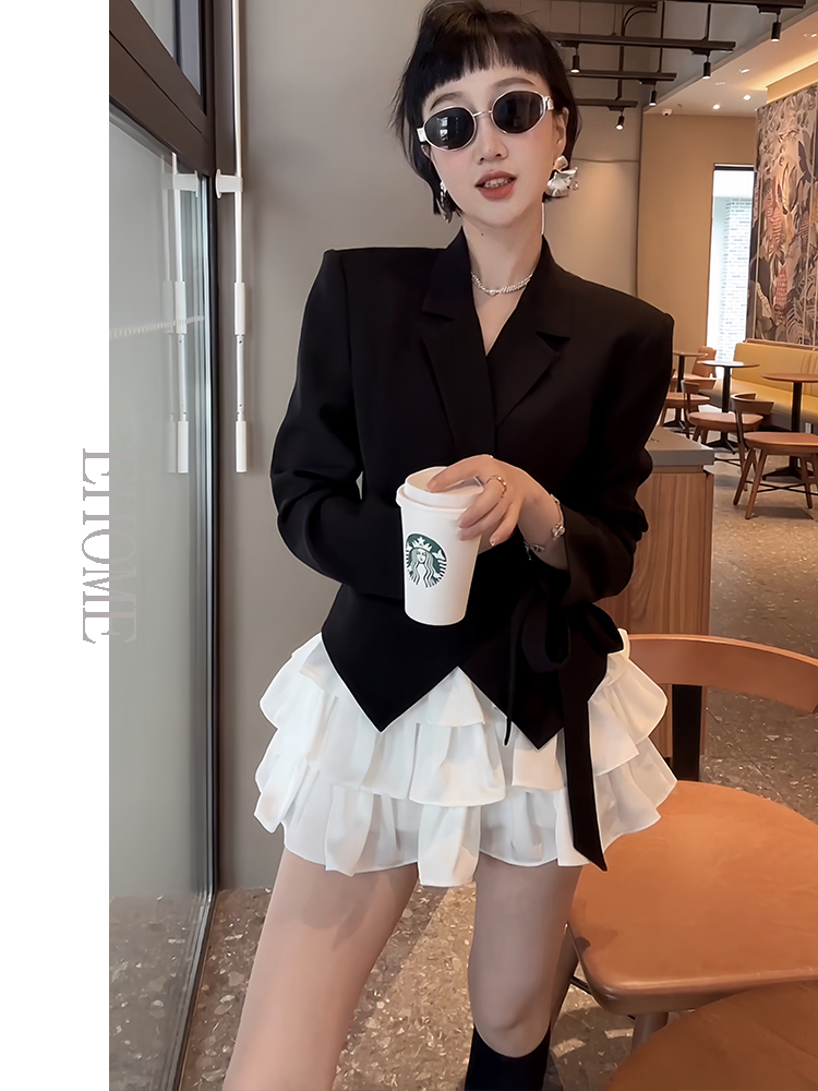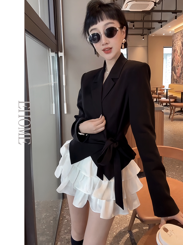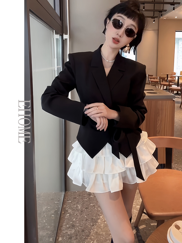 商品名称:绝美开春小套装名媛气质短款系腰带V领西装外套百搭时尚蛋糕裙裤