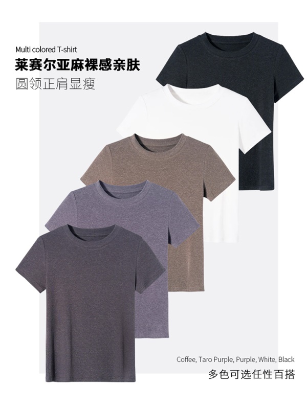 商品名称:2025新款亚麻升级款夏薄款短袖弹力T恤纯色休闲显瘦天丝体恤女潮