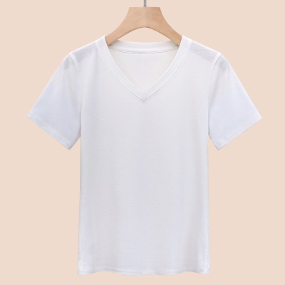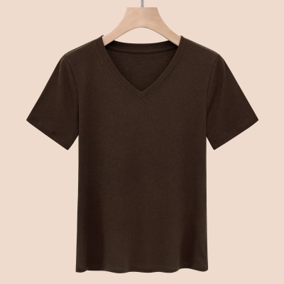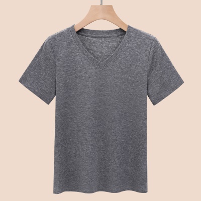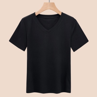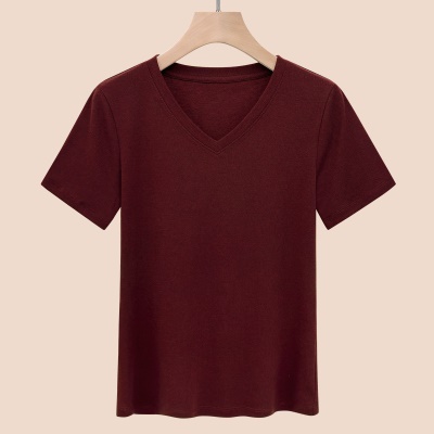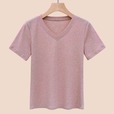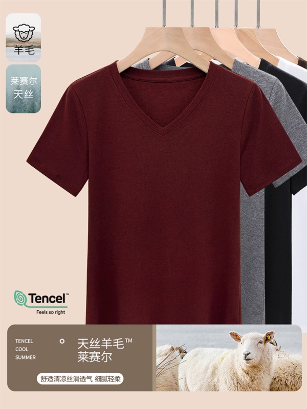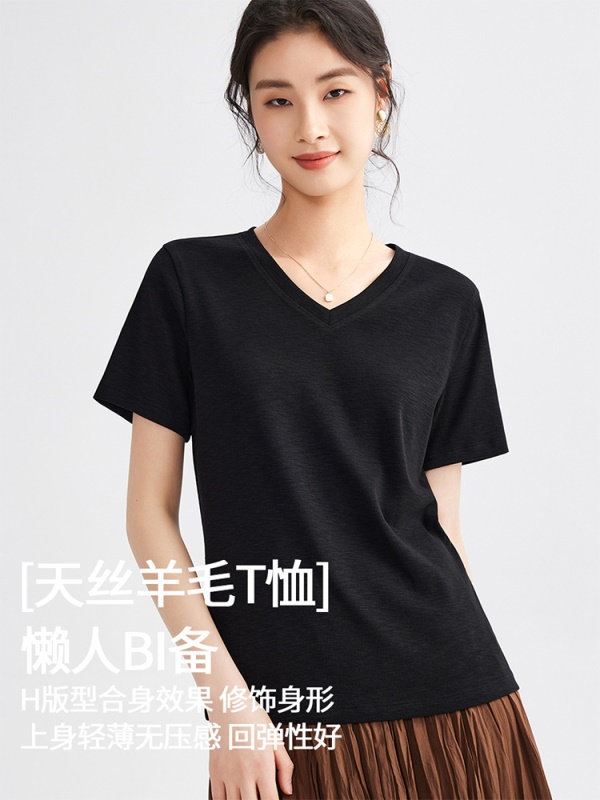 商品名称:天丝羊毛V领正肩短袖t恤女2025年新款上衣夏季洋气减龄高级感内搭